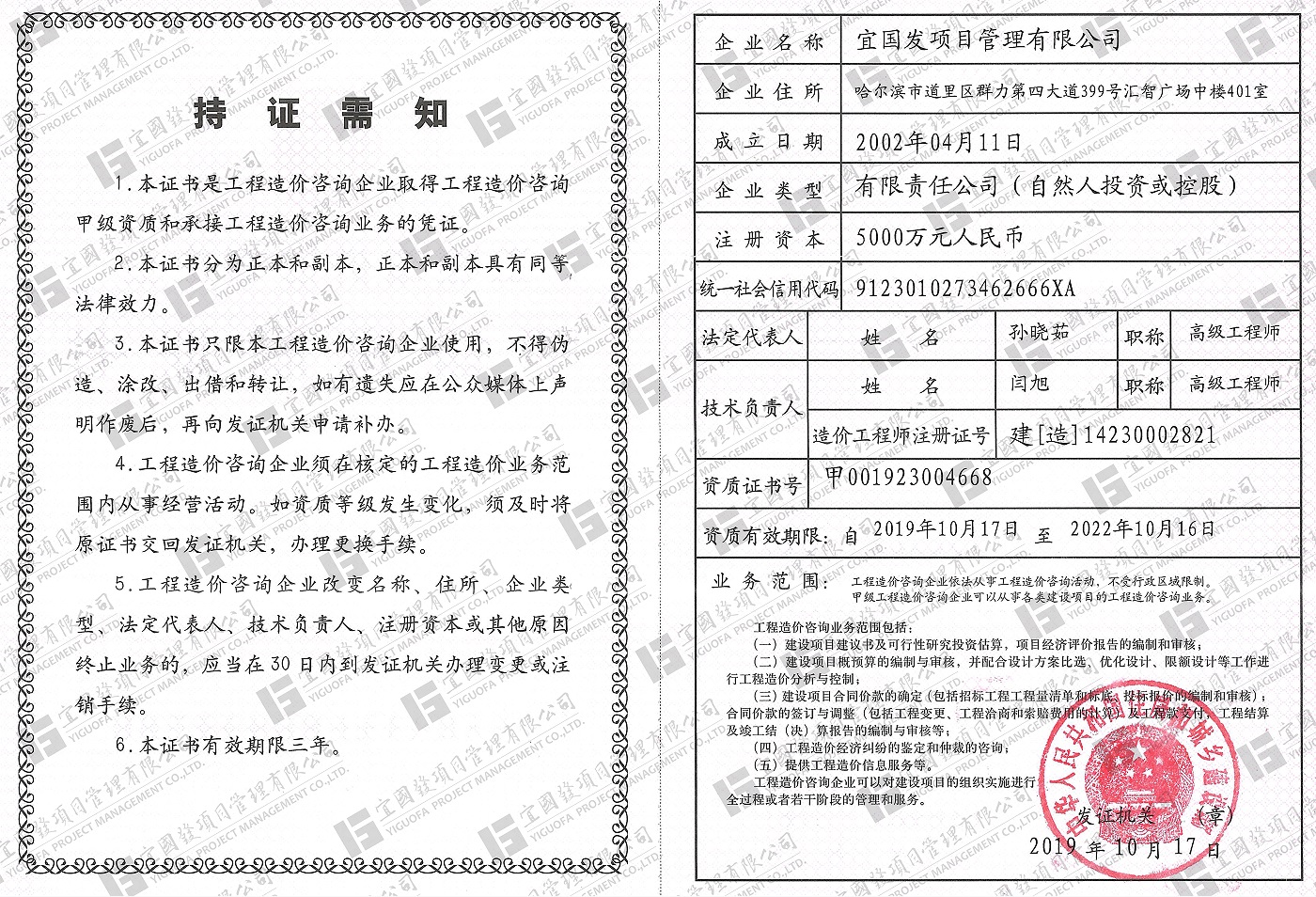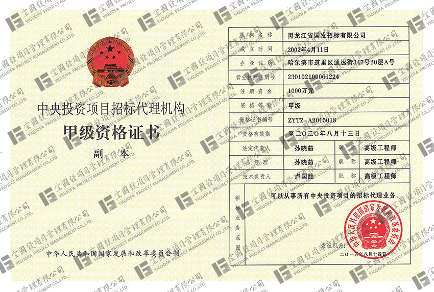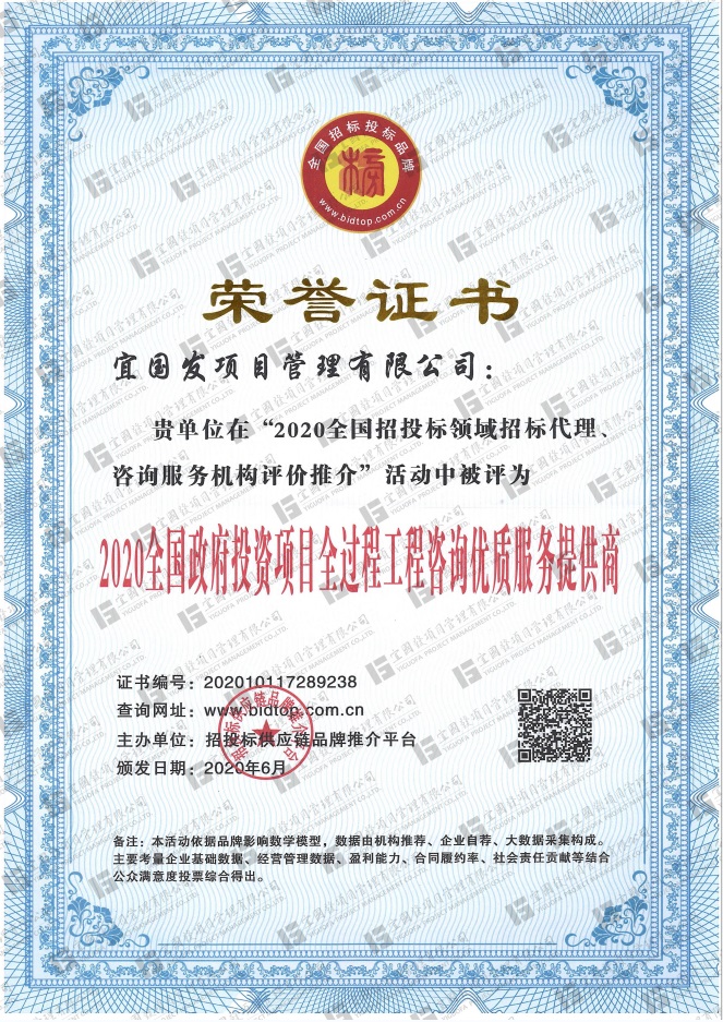 宜国发项目管理有限公司是一家从事建筑工程、市政公用工程、水利水电工程、公路工程、机电工程等各类项目的招标代理工作的专业机构。