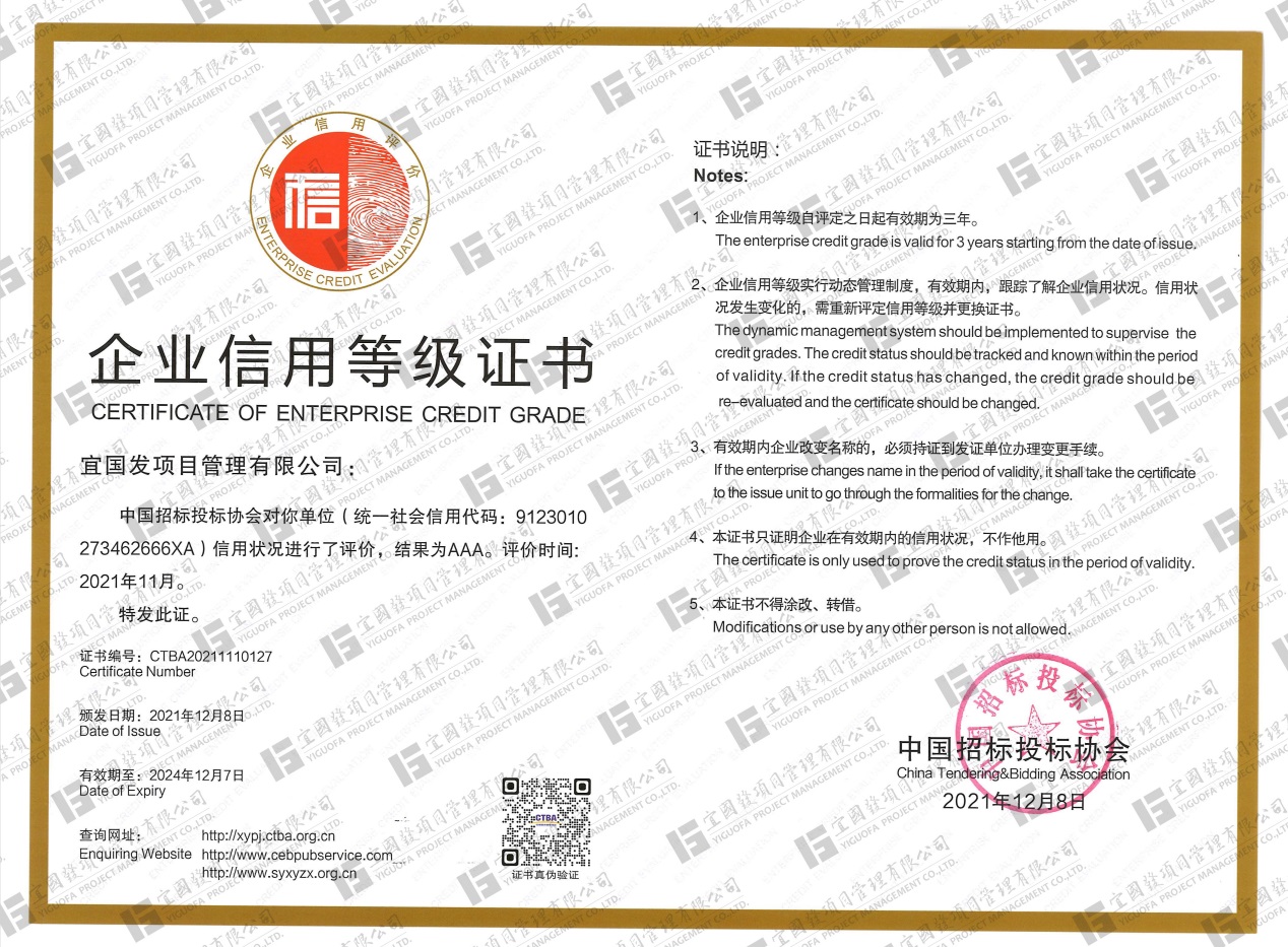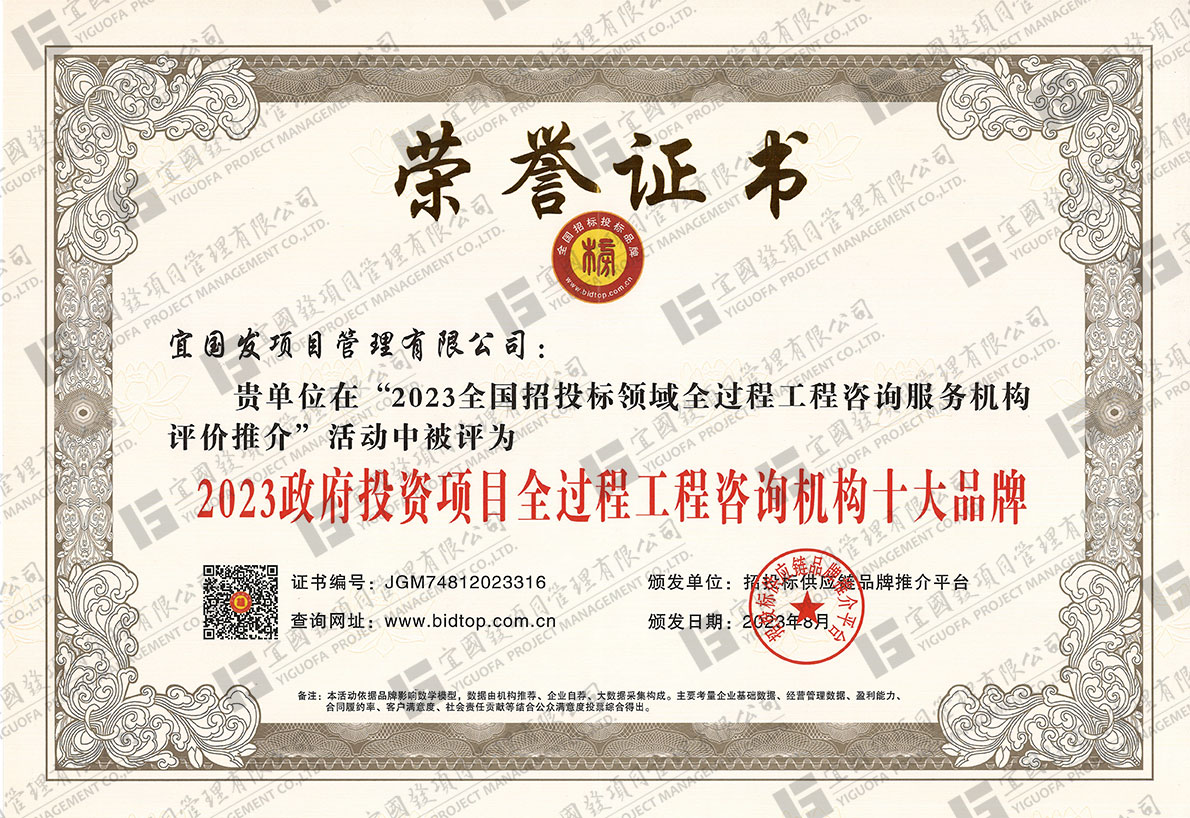 宜国发项目管理有限公司是一家从事建筑工程、市政公用工程、水利水电工程、公路工程、机电工程等各类项目的招标代理工作的专业机构。